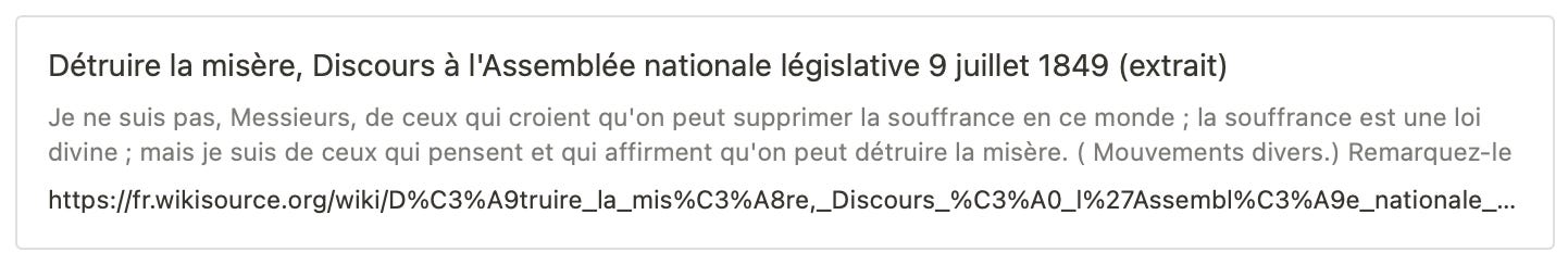 💡 Détruire la misère ! oui, cela est possible. Les législateurs et les gouvernants doivent y songer sans cesse ; car, en pareille matière, tant que le possible n'est pas fait, le devoir n'est pas rempli.