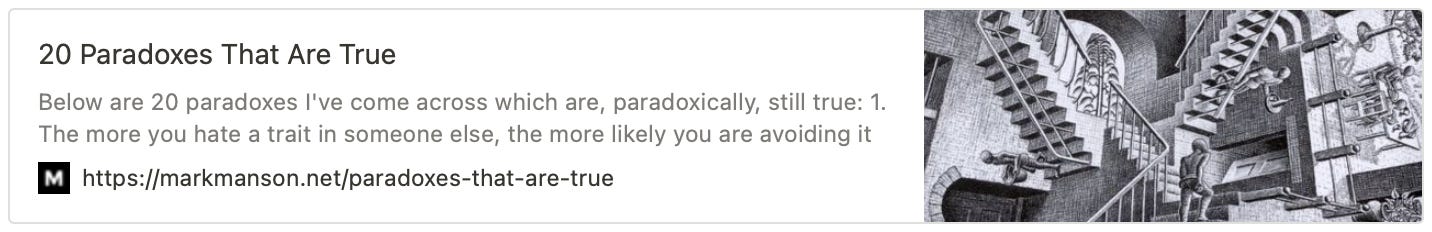 Chaque paradoxe est décrit dans une version minimum et tranchante et, chacun, mériterait un article en entier. Ce n'est pas le cas ici. C'est direct et, divertissant à lire sans pour autant nous vendre du vent. Car ce sont des idées contre-intuitives que nous propose Mark.